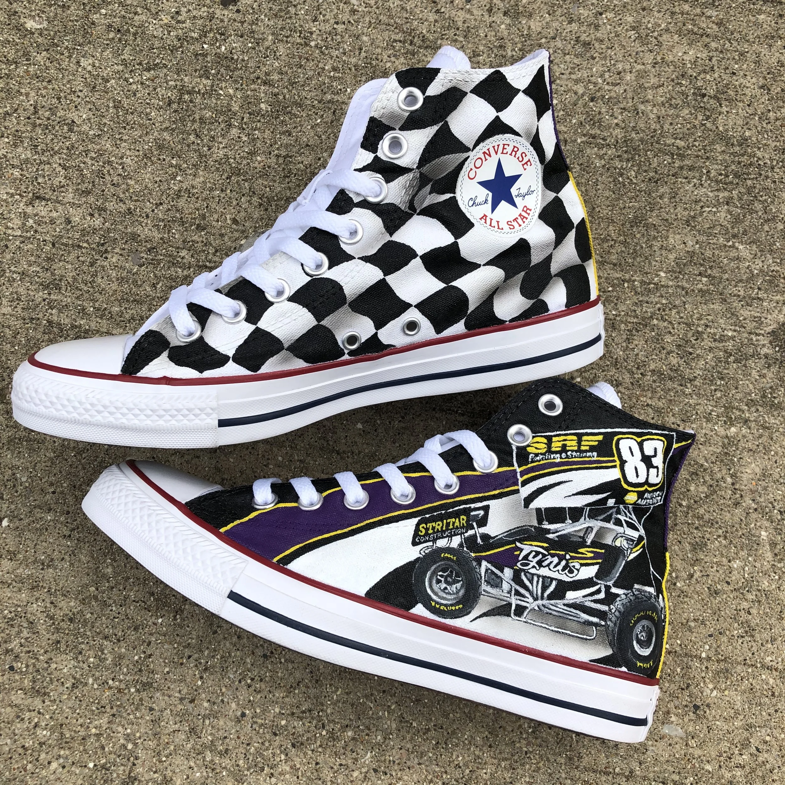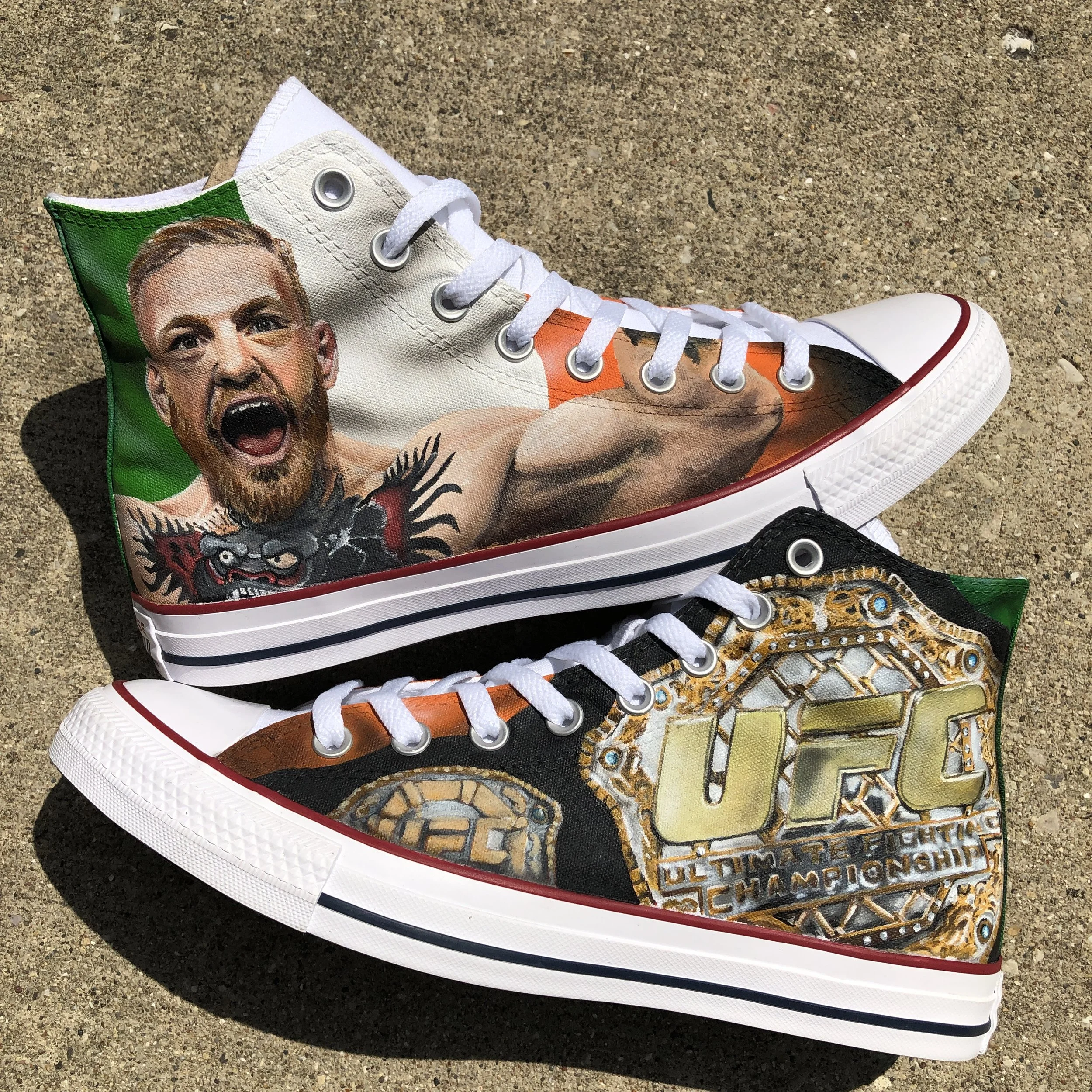 I add custom, hand-painted artwork to shoes, accessories, clothing, and anything else paint will stick to.